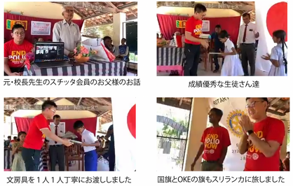 先日、当クラブの今長会員がスチッタP会長と共にスリランカへ行き、佐々木会員の会社からいただいた文房具類を現地の学校生徒たちに寄付として渡してきてくださいました。