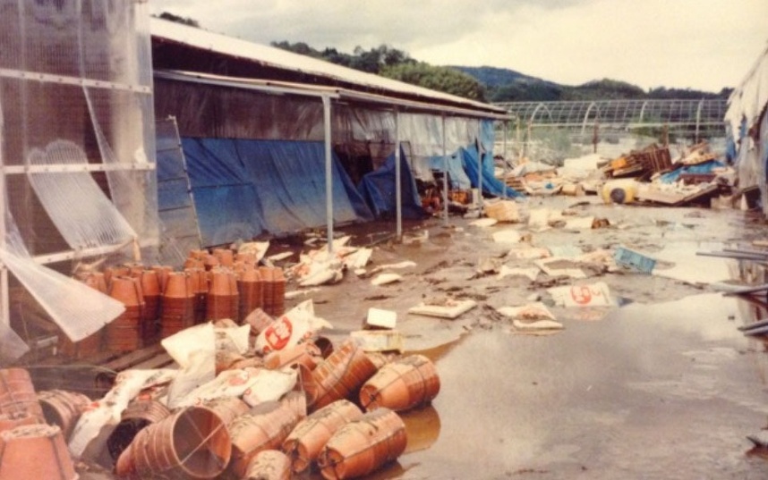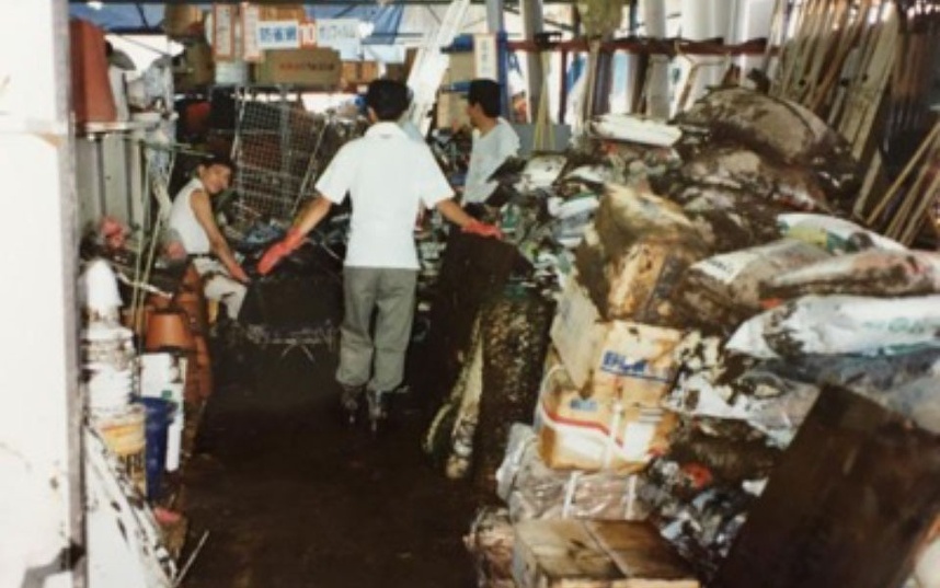 平成2年の7月並び5年の9月と数十年に1回と危惧されていた水害を2度も短期間で経験することとなりました。その時、私は学生でして、親戚にも手伝って頂き、泥まみれの店舗や商品の洗い流しをしたことを覚えております。