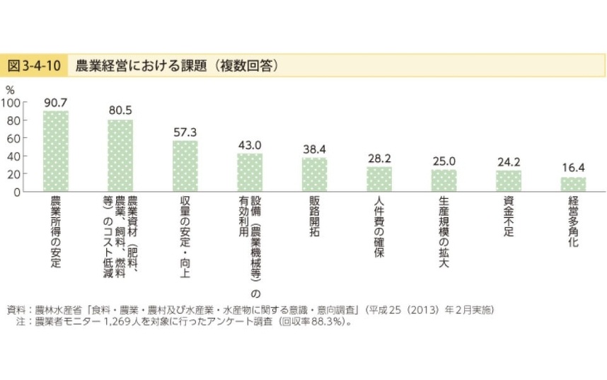 そんな中での課題はやはり、安定的な収入や資材などのコストそして安定的な生産量となっております。2番目の資材のコストに関しては、弊社の売上にも繋がる事ですが、みなさん削減したがっております。昨今の原材料高騰に伴い、肥料などは2倍以上に値上がりしました。