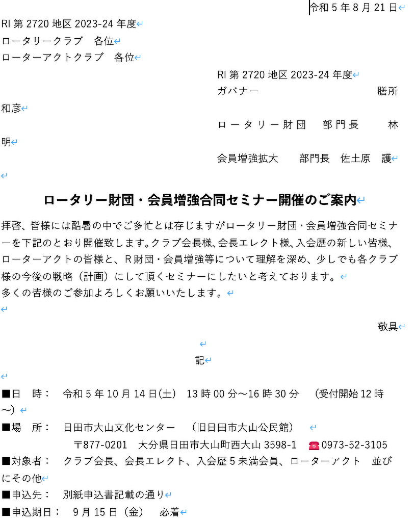 このたびは2720 Japan O.K.ロータリーEクラブの例会にご参加頂きありがとうございます。