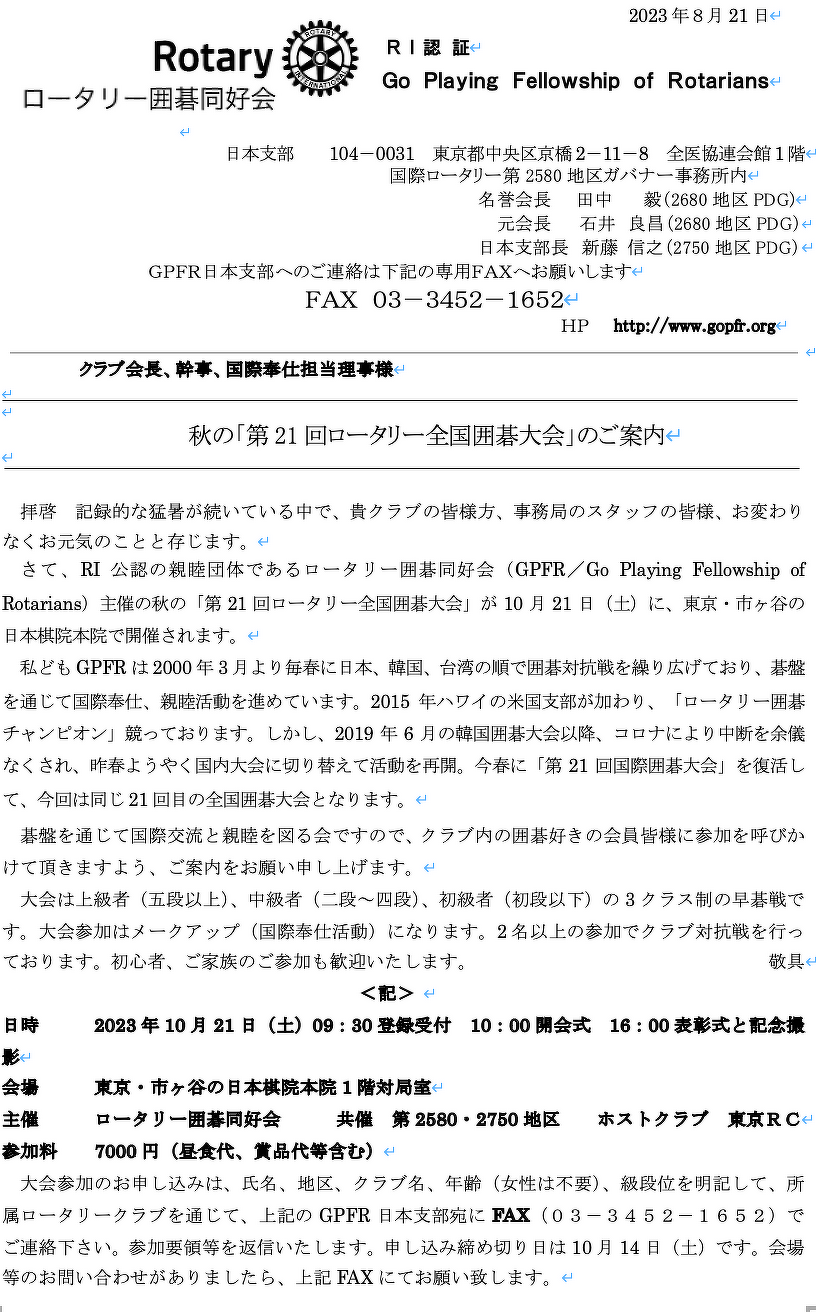 2720 Japan O.K. ロータリーEクラブではFAXでも受け付けております。