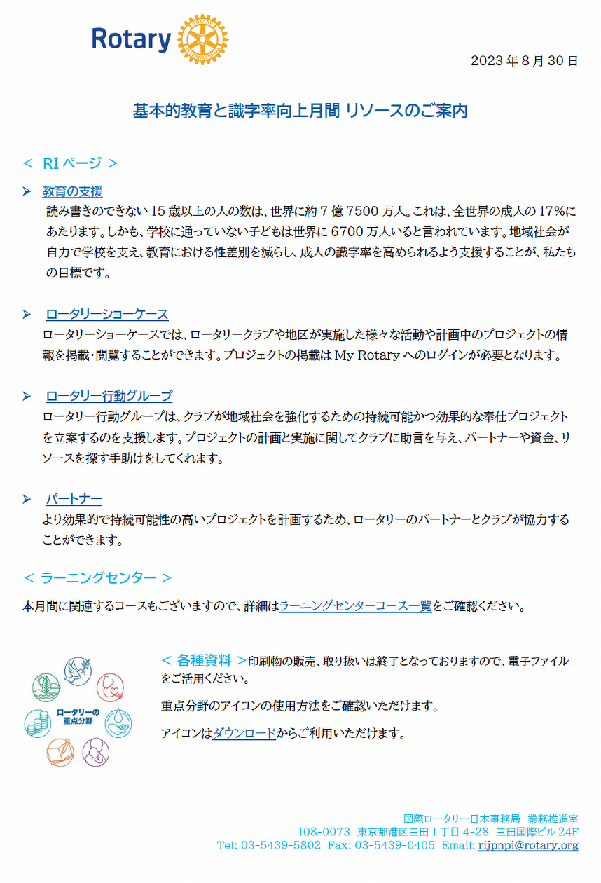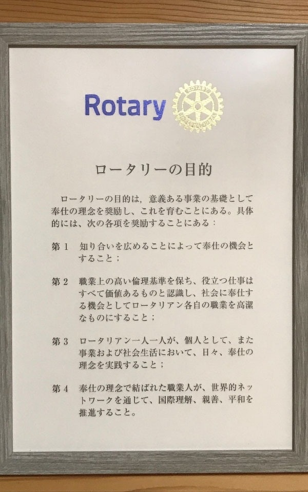 それは、ロータリーの目的にある「ロータリアン一人一人が、個人として、また事業および社会生活において、日々、奉仕の理念を実践すること」にも通じるものと考えています。