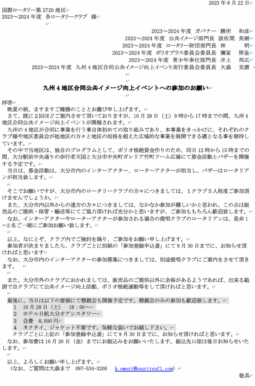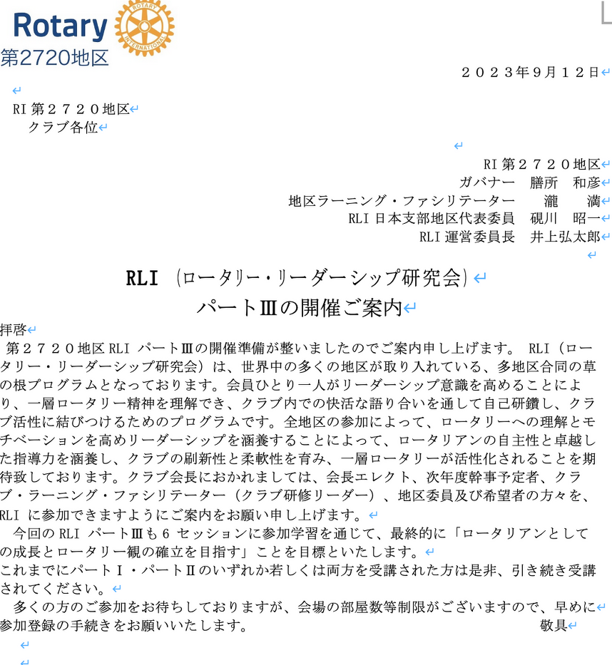 2720 Japan O.K. ロータリーEクラブ会員の方はこちらで出席へ