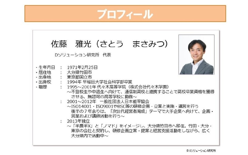 ロータリー歴6ヶ月、職業分類「経営コンサルタント」、Dソリューション研究所の佐藤雅光です。