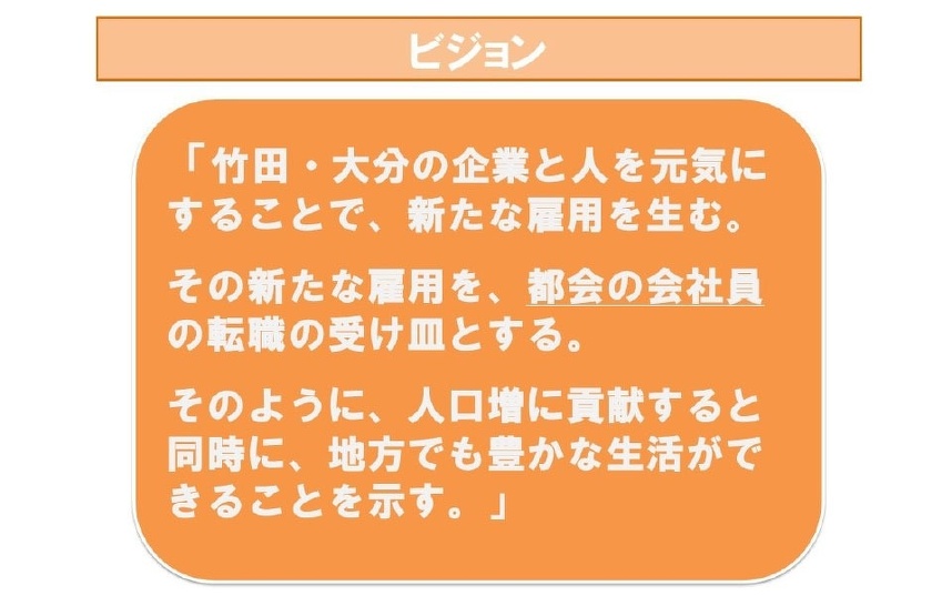 「竹田・大分の企業と人を元気にすることで、新たな雇用を生む。