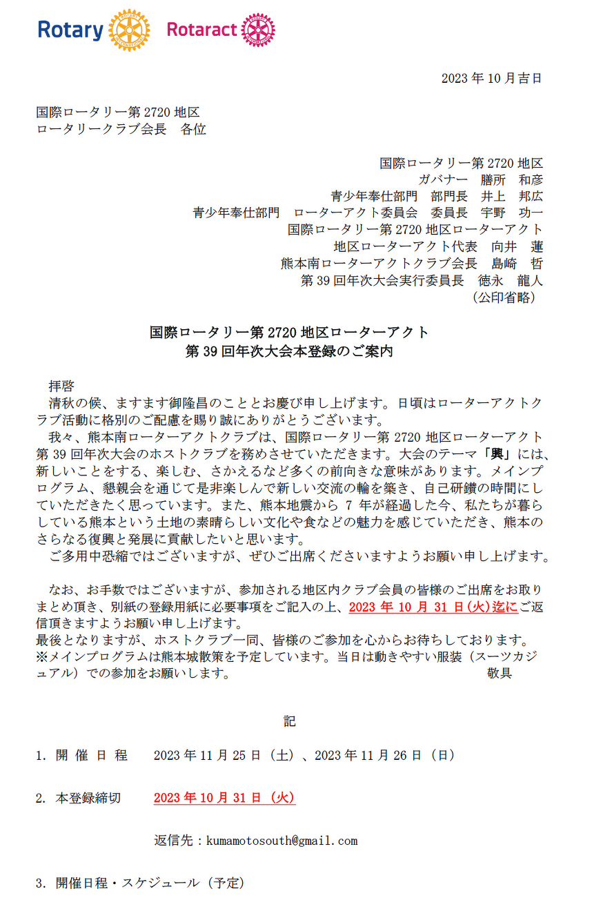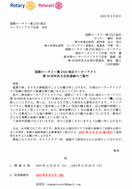 ローターアクトの年次大会仮登録は、松田会員お一人しております。