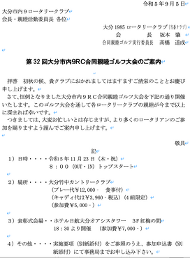 クラブ内申し込み締め切りは、10月18日(水)です。 事務局 滝波までご連絡ください。