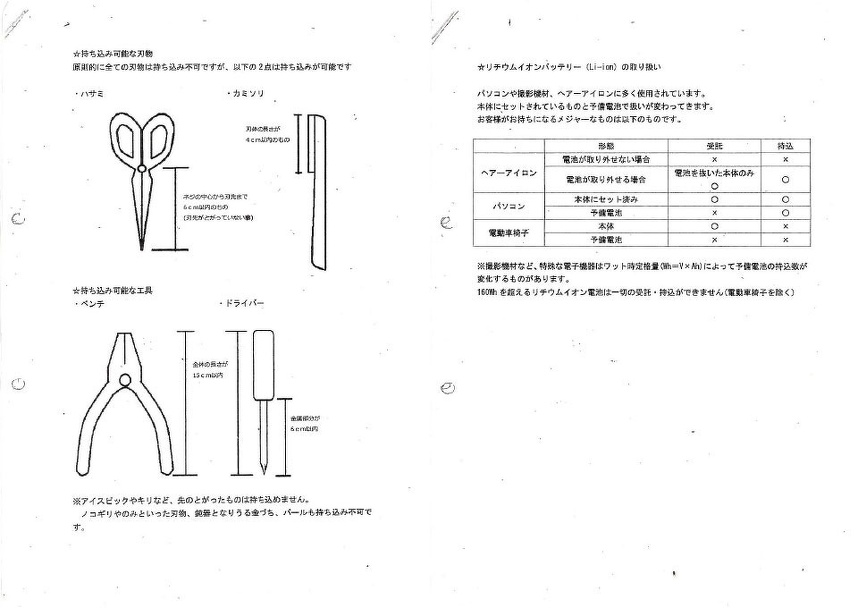 主な危険物は。ライター、リチウムイオン電池を使用した物(パソコンやモバイルバッテリー等)。