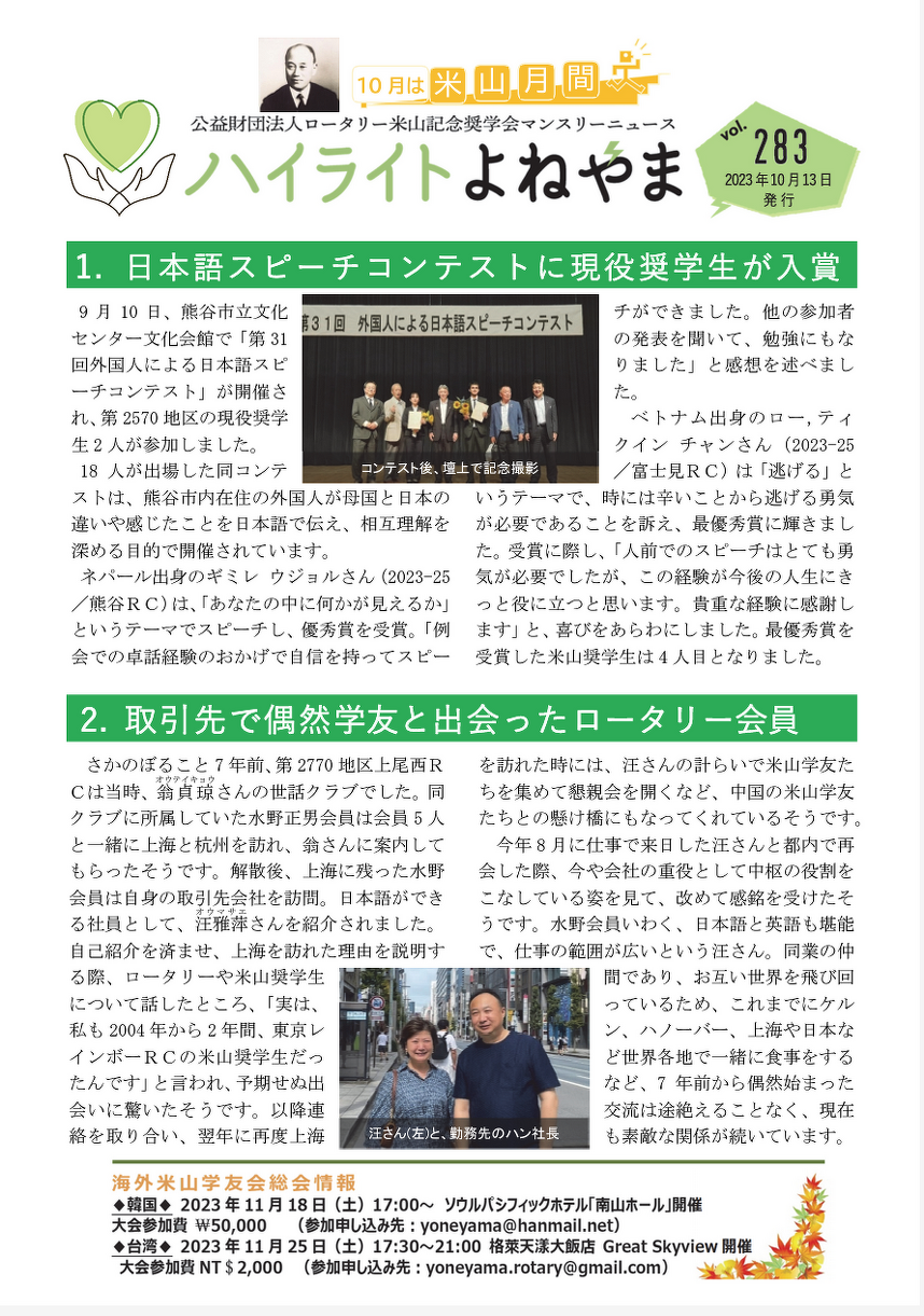 ★ ハ イ ラ イ ト よ ね や ま 283号 ★ 2023年10月13日発行