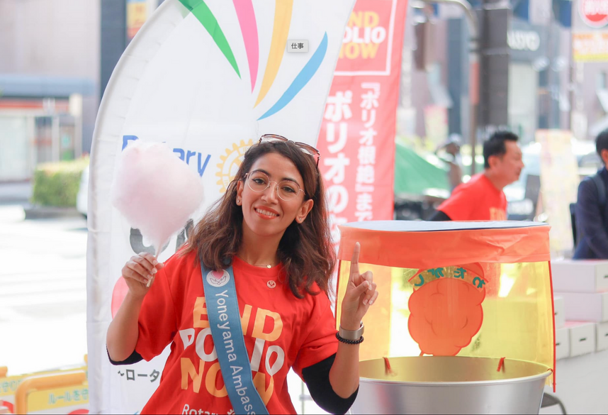 今回のEND POLIO募金活動には当地区に所属する米山奨学生にも参加していただくことが決まっておりましたので、現在「第5代よねやま親善大使」であるImen Jebri(イメン ジェブリ)さんにもお越し頂きました。