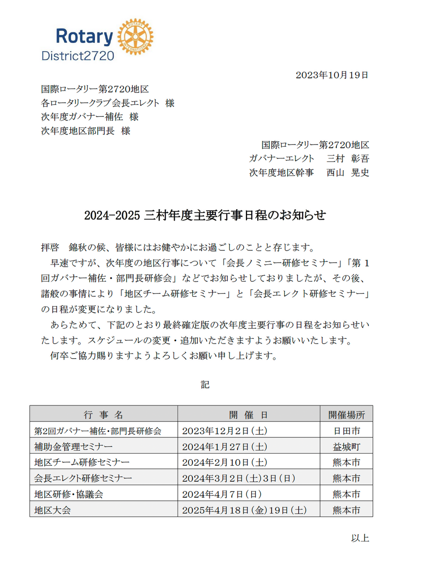 2720 Japan O.K. ロータリーEクラブ会員の方はこちらで出席へ