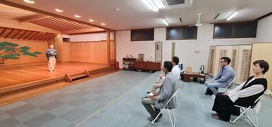 「メーキャップツアー」といっても参加する皆さんはそれぞれ予定もありますので、最初に決めたことは「11/1のお昼に東京RCの例会会場である帝国ホテルで待ち合わせ」という事くらいでした。その後、武田会員のご厚意もあり、彼の活動拠点である東京中野の「武田修能館」を訪問させていただけるようになりました。ここではなかなか聞くことのない能のお話や実際に舞台に上がっての体験などもさせて頂き、とても貴重な時間を過ごすことが出来ました。武田会員のご厚意に感謝申し上げます。