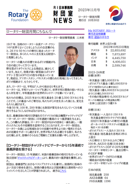 当Eクラブのサイトから当Eクラブのサイト内を含め、ロータリーの友、マイロータリー、地区のHP、財団室NEWSなど様々な媒体から活動を知ることができます。中でもマイロータリーからラーニングセンターに入っていただき、ロータリー財団の中の「ご寄付の力」の一読をお勧めします。(当クラブのマイロータリーの登録率は約70%となっており、まだ登録されていない方は通算例会134回と135回に早水パスト会長が登録方法を詳しく説明されていますので、ぜひそちらをご覧いただき登録をしてください。)
