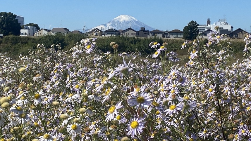 3.絶滅危惧種カワラノギクも富士山を背景にきれいに咲きました。