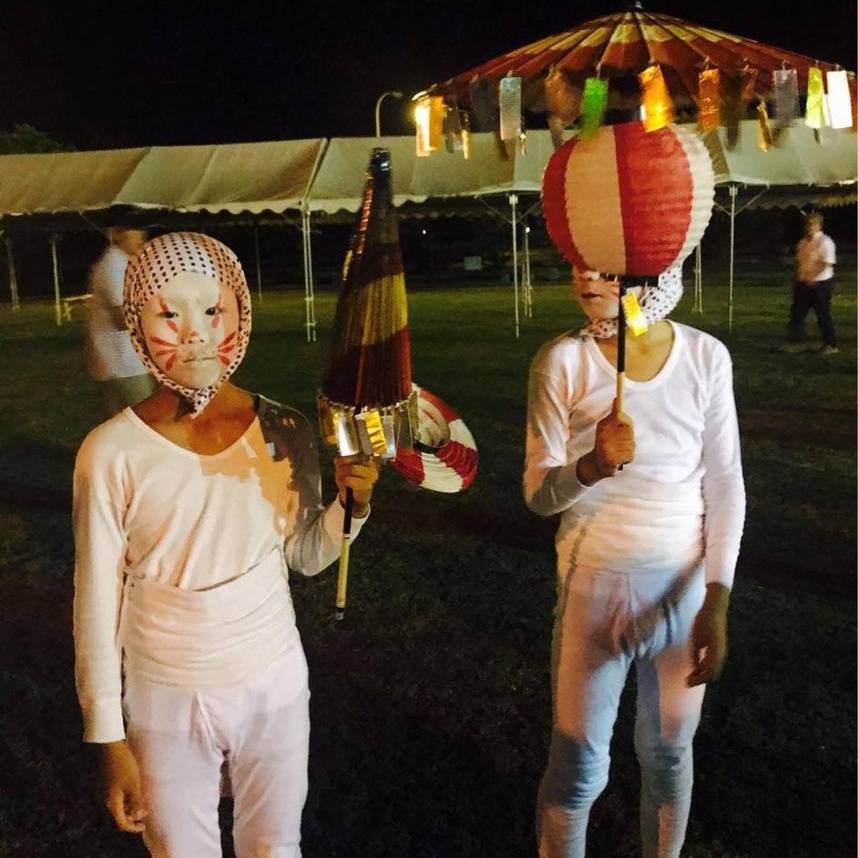 地元の子ども達が、キツネやタヌキになります。