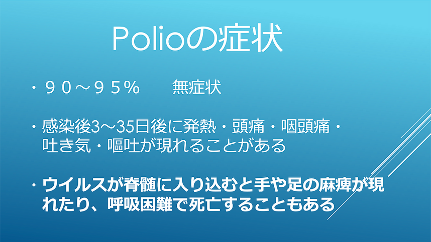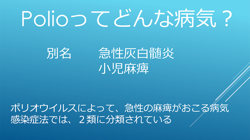 みなさま、こんにちは。今日は、ポリオについてお話させて頂きます。