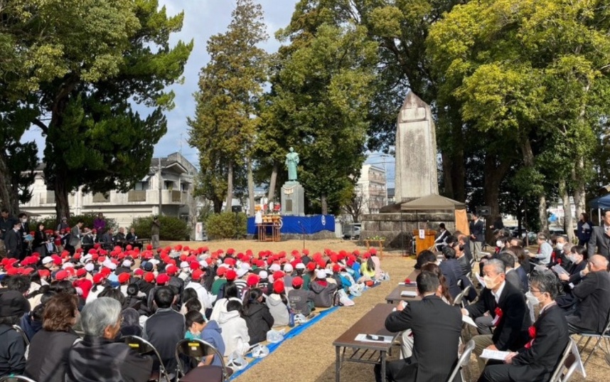 現在でも、地域住民とともに、3小学校の6年生200数十名が参加し、墓前祭を開催しています。その中で、小楠先生が甥に送った「送別の語」を、児童全員が唱和しますが、その様子はとても感動的です。