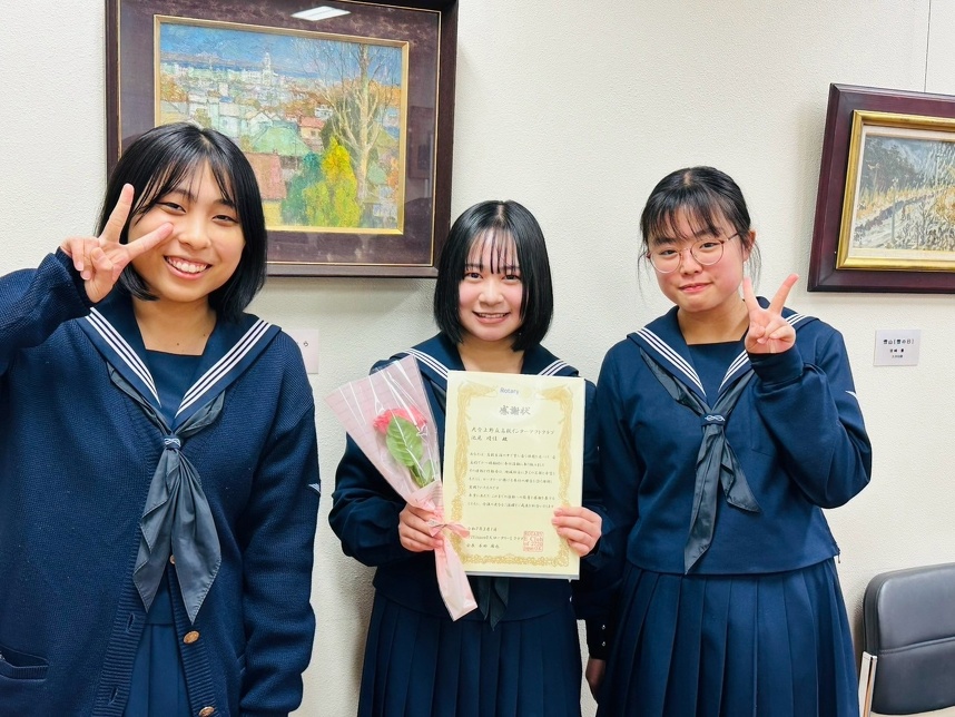 青少年奉仕委員会です。大分上野丘高等学校のインターアクトクラブは月2回のペースで例会を行なっており、様々な奉仕活動の提案や実施に向けての話し合いなどを行なっています。大変前向きなインターアクト生たちでとても頑張っています。Eクラブの会員は誰でも例会に参加できますので、ご都合の良い時には青少年奉仕委員長の安部一または事務局へお声掛けの上、是非ご参加ください。様々なロータリアンとの関わりが彼ら彼女らの成長に繋がると思います。尚、学校行事の関係で参加人数が少ない時もありますのでご了承いただけますと幸いです