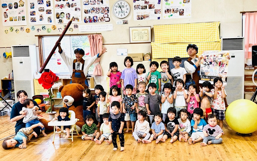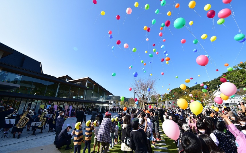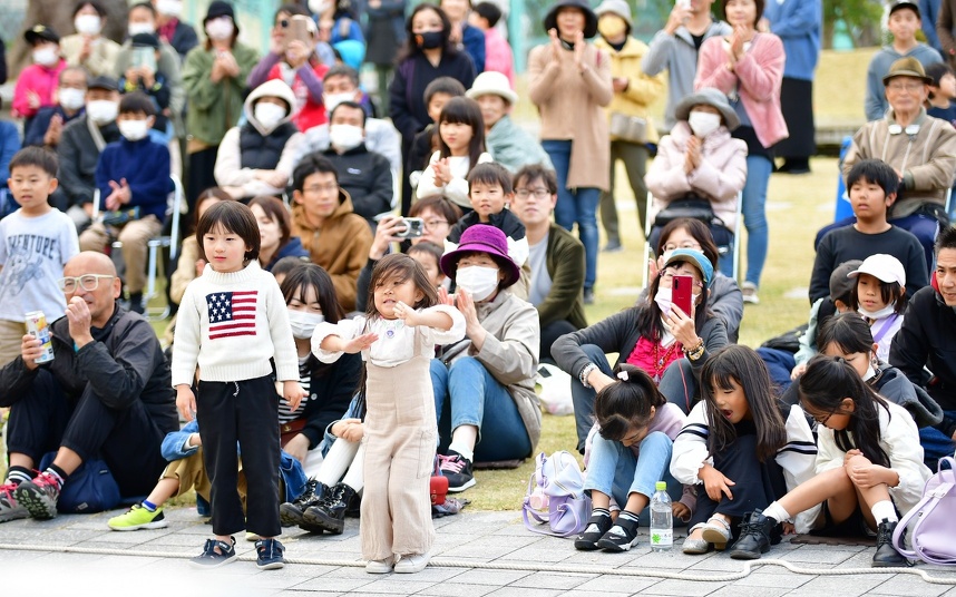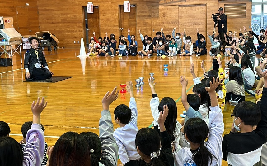 そして現在、佐伯市の「交流の拠点」として2020年に開館した「さいき城山桜ホール」で大分県最大の「さいき大道芸フェスタ」をプロデュースしています。このフェスタの大きな特徴は、何と言っても”市民参加型”であること。2021年からの学校公演を通じて、佐伯市内の小学校を中心に約30公演、5000人以上の子どもたちが大道芸に触れる機会を提供し、佐伯の大道芸文化を次世代に繋いでいます。