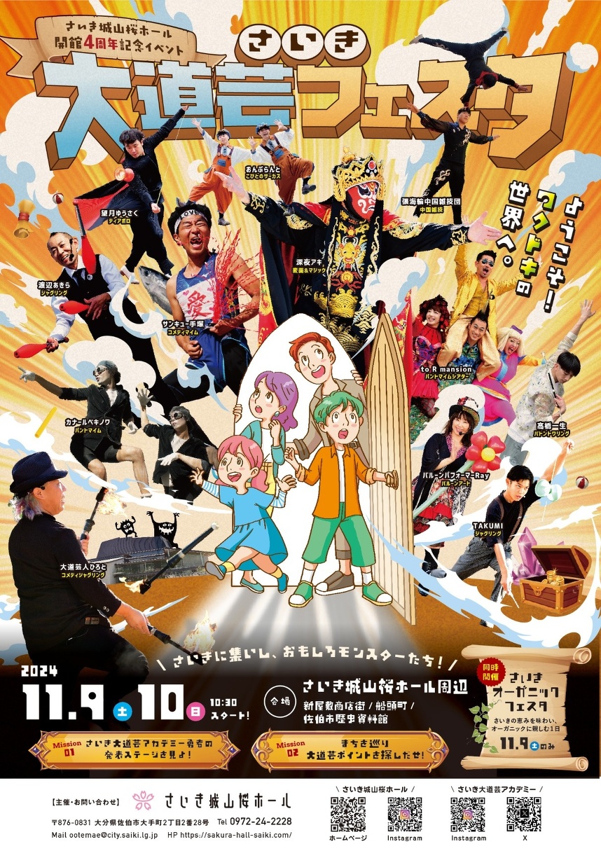 「さいき大道芸フェスタ」、今年は5周年で11月に開催予定です。ぜひ、わくわくドキドキの「異世界さいき」に遊びにきてください。