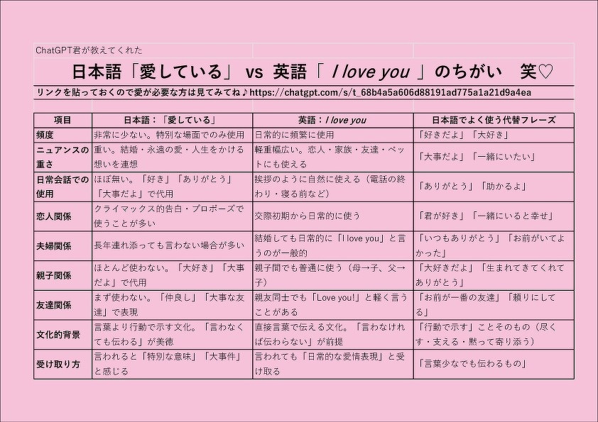 chatGPT君が教えてくれた愛の違いをシェアしますね♪