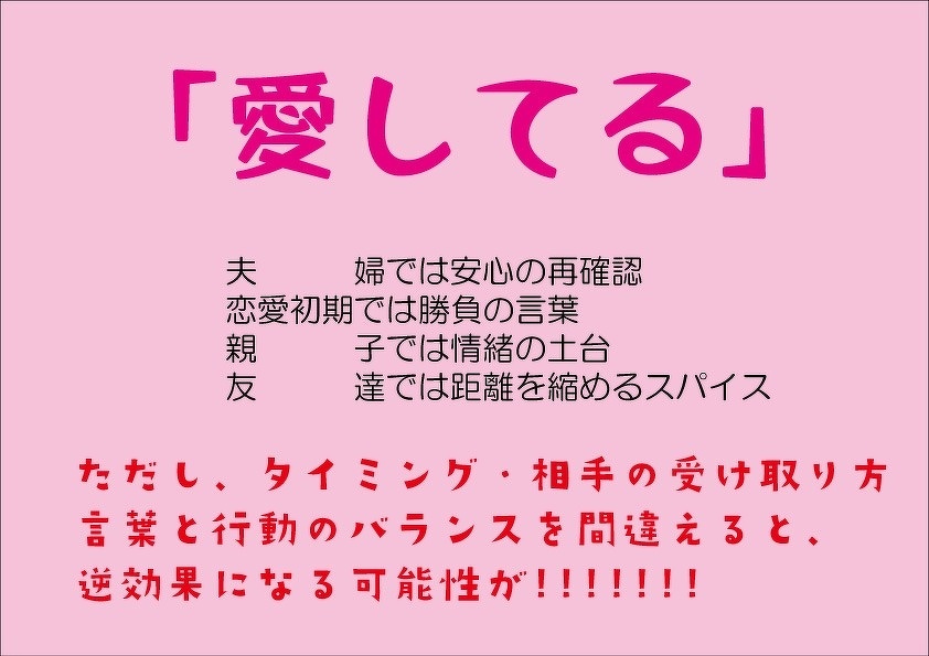 「愛してるよ」と身近な方から行ってみてくださいね。