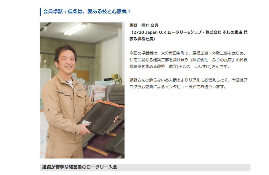 ロータリーとは、異業種の経営者が仲良くなれる場であり、世界中の仲間と奉仕を通じてつながれる場。