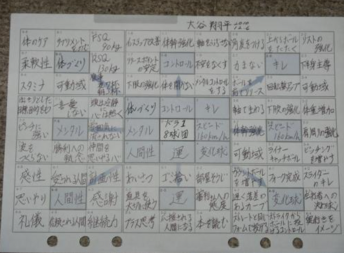 出典:スポニチ|花巻東時代に大谷が立てたマンダラチャート