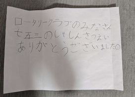 七五三撮影会に参加いただきました会員様から,お預かりした,お弁当代から、余剰金ができましたので、七五三撮影会の成功を祝して、ニコニコスマイルします。社会奉仕委員会です。