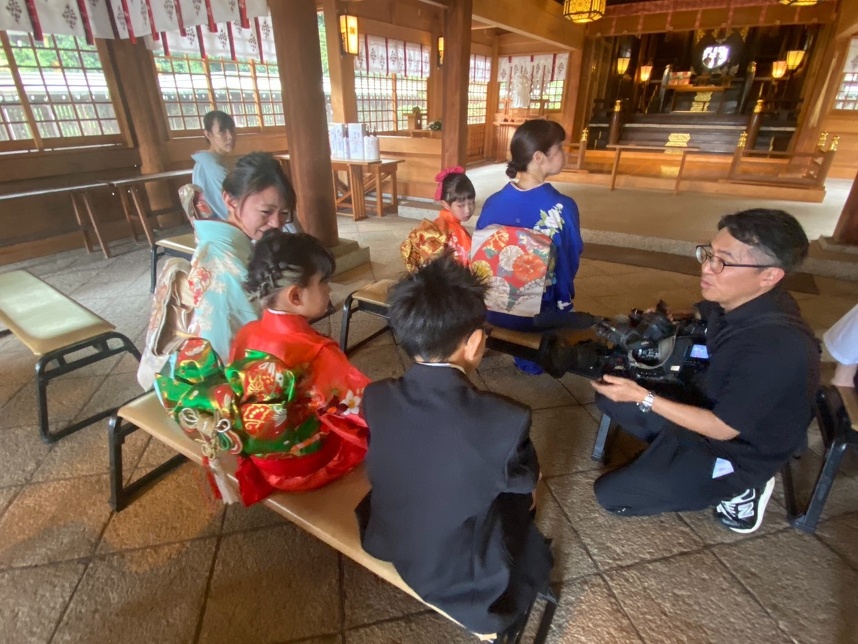 大分縣護國神社の境内には、晴れ着姿の子どもたちと笑顔の親御さんたち。