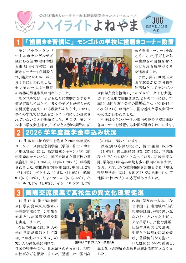 米山奨学事業は、奨学生を支援する活動であると同時に、