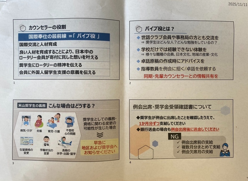 ■米山奨学生のプレゼンテーションは、私にとって大きな学びでした。