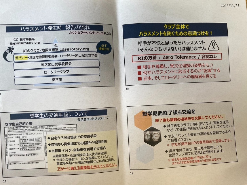 この 米山カウンセラー報告会及び第2回クラブ米山委員会セミナーは