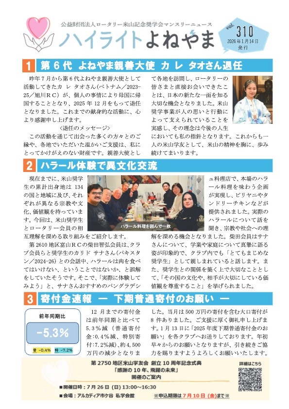 令和6年は能登半島地震、本年は堀川貴史パストガバナーの訃報。