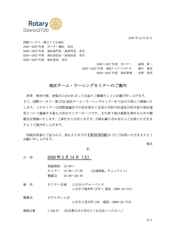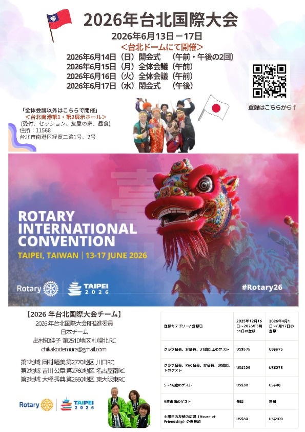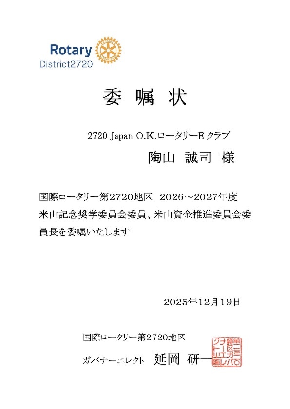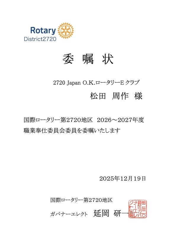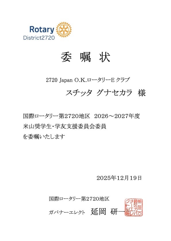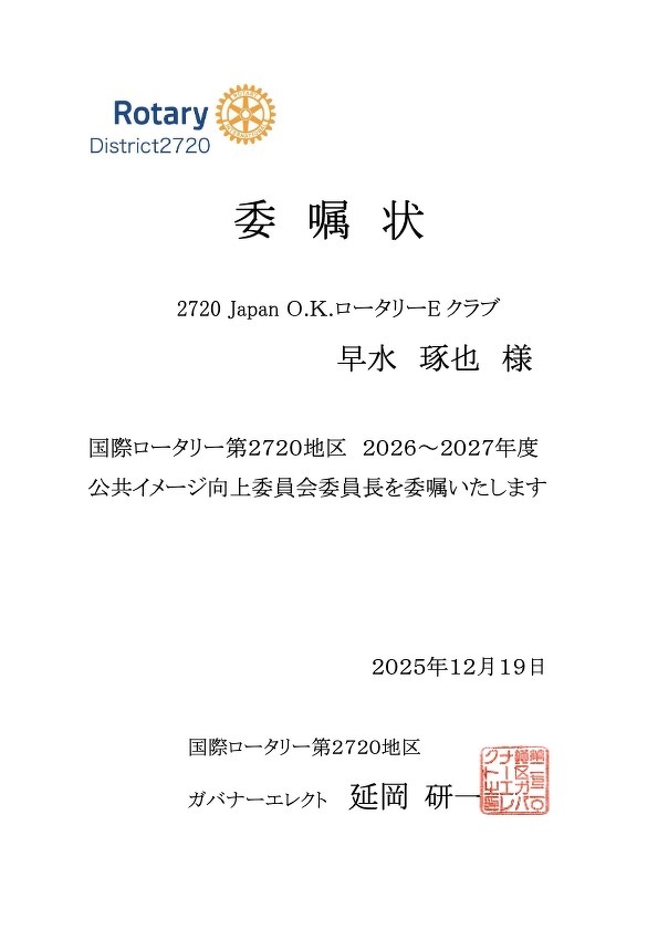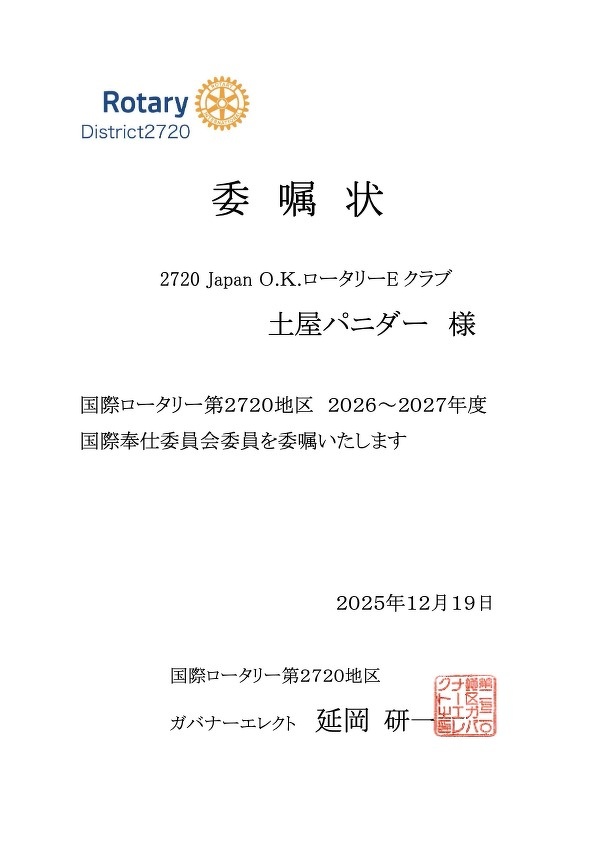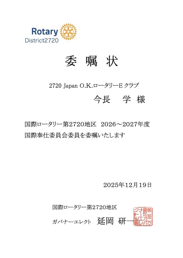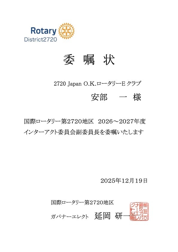 2720 Japan O.K. ロータリーEクラブ会員の方はこちらで出席へ