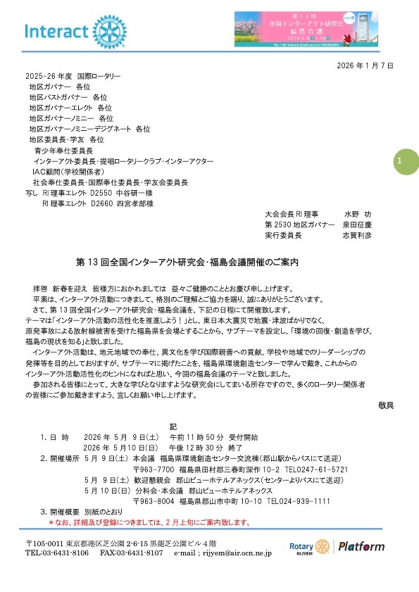 - ローターアクトEクラブの活動報告