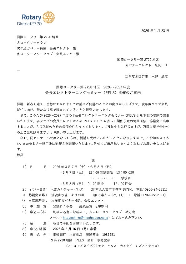 2720 Japan O.K. ロータリーEクラブ会員の方はこちらで出席へ