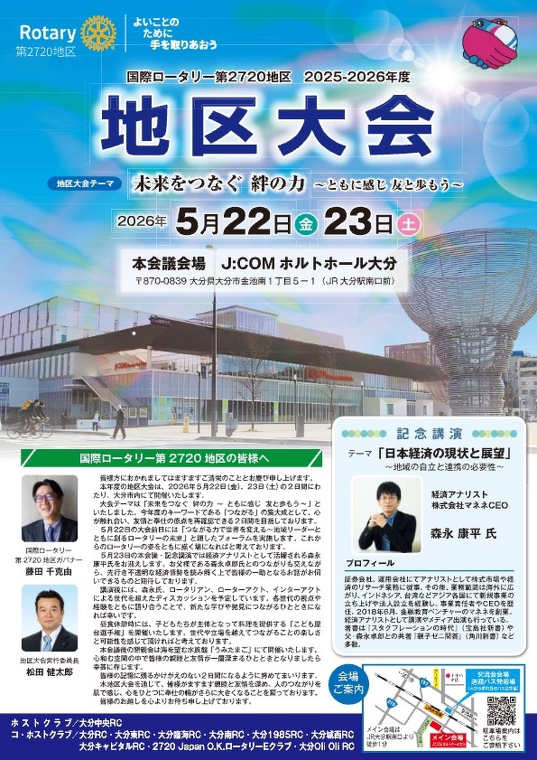 国際ロータリー第2720地区より「地区大会」のご案内が届いています。