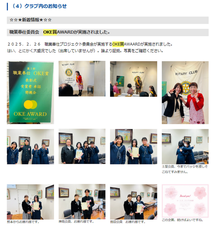 と、昨年本田年度、宮迫当時職業奉仕委委員長が提案されてはじまったOKE賞。