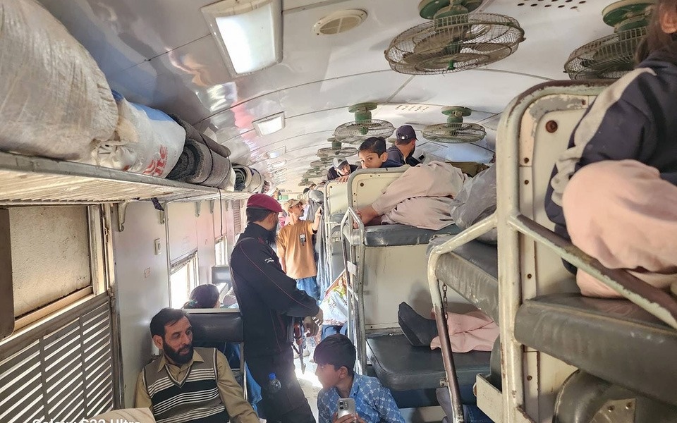 最初の活動は長距離列車内でのワクチン投与でした。車両は片方に1人掛けの座席、もう一方は二段ベッドのようになっている座席になっており、ベッドの上下に両親の間に挟まれるように小さな子どもがたくさん乗車しています。コンパートメントに布をかけてカーテン状にして、外から見えないように載っている家族もたくさんいました。女性ワーカーが一つずつカーテンをめくって保護者に声をかけます。車両を一両ずつ回り、5歳以下の子どもを見つけると、現地ワーカーが保護者に説明し、了承を得てからワクチンを投与します。投与済みの子どもには紫色のマーカーを小指につけます。