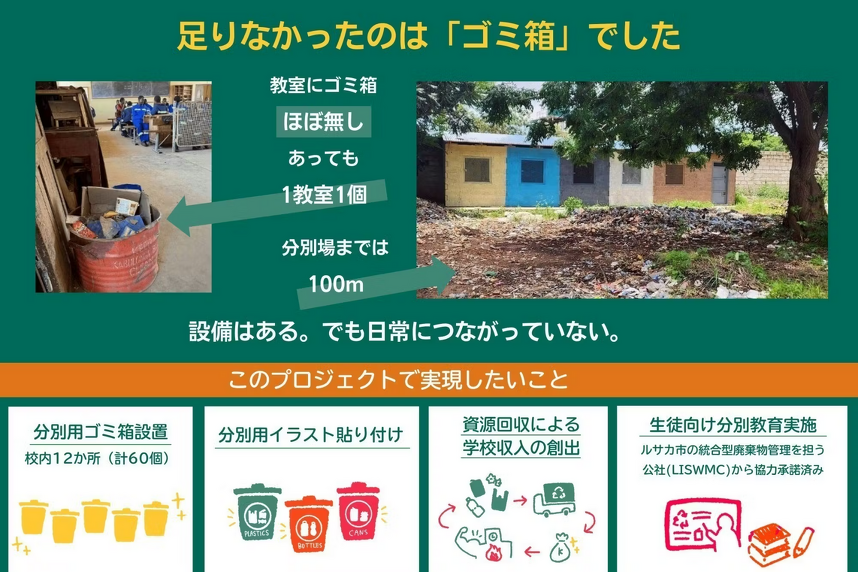 アフリカ ザンビアの首都ルカサに「60個のごみ箱で2,200人の未来を変える」