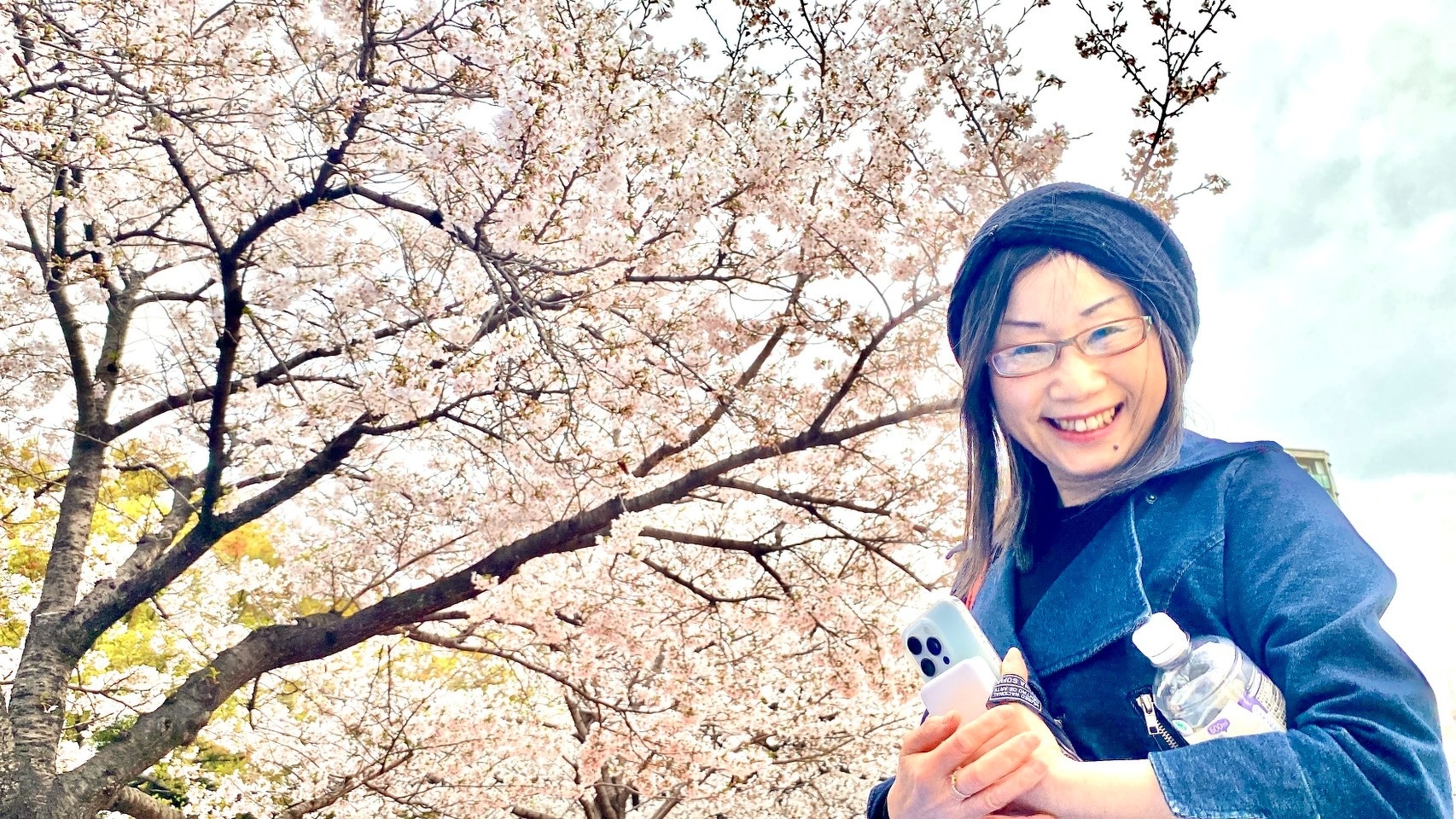 ↓ その中で、花と戯れる仲間が集えました。(4月3日、親睦委員会花見)