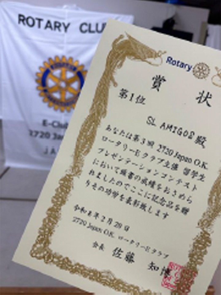 その後、佐藤会長のEクラブの活動のご説明を受けました。その後、第一次審査を通過した、チームを中心に、激戦になったと思います。私たちのチームは、見事優勝を果たすことができました。この場をお借りして、当日にご臨席いただきましたロータリークラブの皆様へ心より御礼申し上げます。