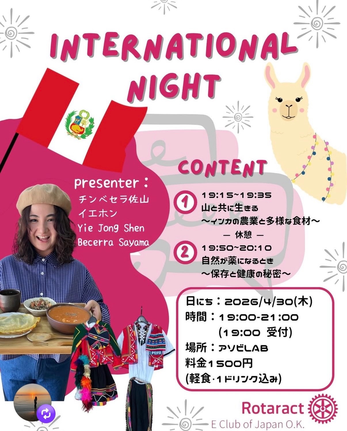 ★次の「INTERNATIONAL NIGHT」 4月30日(木曜日)