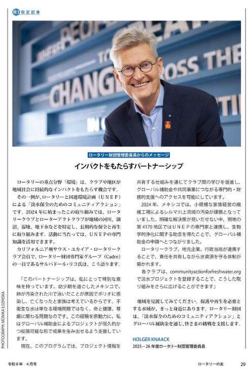 (みなさーん。ロータリーの友、お読みですか? ID PASSが解らない方はご相談くださいね)