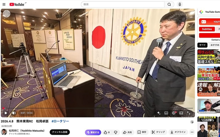 今回の卓話は2026年4月8日、熊本東南ロータリークラブにて行った卓話の模様をお伝えします。